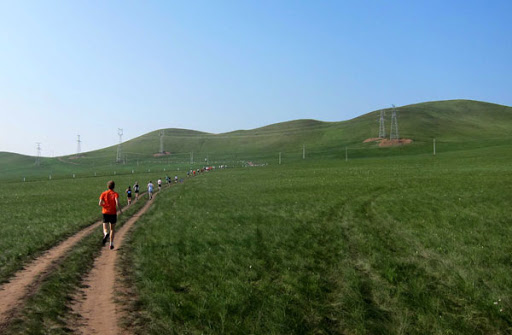La course avait lieu en Mongolie Intérieure, une province chinoise à peu près aussi éloignée de la civilisation que tu peux l’être. Je me rends à Beijing, où j’embarque dans un autobus nolisé avec une gang de monde habillés en Spandex avec des veines sur leurs avant-bras, on se dirige vers le nord et une fois passés la Grande Muraille, boom, presque pus aucun signe de vie pour 12 heures de route. On est rendus dans les grandes plaines mongoles, avec des collines vertes à perte de vue.