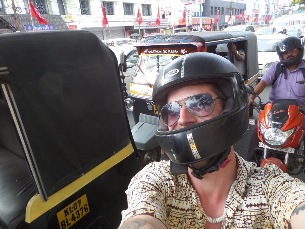 1- Vue du traversier entre Ernakulam et Fort Kochi. On peut voir les gros filets de pêche à l’arrière-plan. Et comme sur pas mal de mes photos, il y a un monsieur indien qui me regarde avec les sourcils froncés.2- Scène de rue assez classique. Je me promène, sans but précis, quand soudainement quelque chose me poke drette entre les fesses. Je me retourne un peu en crisse, pensant que c’est un moron qui m’a accroché avec un sac de je-sais-pas-quoi, mais c’est un esti de gros boeuf et sa corne. J’ai fait le saut en maudit. 3- Les bars indiens font pitié en cibole, mais c’est pas mal la seule place, autre que les magasins d’alcool sinistres avec des files interminables, où tu peux avoir une bière. Elle est pas très bonne en général, mais assez forte, 8% étant pas rare.4- Il y avait un mélange de christianisme, de bouddhisme, d’hindouisme et d’islam dans ce coin-là. Ils disent c’est harmonieux, et je suis prêt à le croire, pour cette région dans le sud en tout cas. Disons que certaines places en Inde sont pas trop des examples en la matière.5- Une promenade en canot dans les mangroves et petites rivières du Kerala. Un peu “touristique” mais très plaisant.6- La ville de Chennai vue de haut, d’un des seuls buildings de plus de quatre étages. C’est une des villes majeures du pays, disons qu’à regarder ce fouillis j’ai un peu de la misère à prendre au sérieux ceux qui disent que l’Inde va rattraper et même surpasser la Chine.7- Des performeurs de Kuttiyatam, une forme de théâtre assez spéciale, qui se maquillent avant leur show8- Tant qu’à constamment être pogné dans le traffic, autant prendre un selfie. Se promener en mobylette là-dedans c’était extrêmement le fun.9- Le temple Arulmigu Meenakshi Sundareshwarar à Madurai