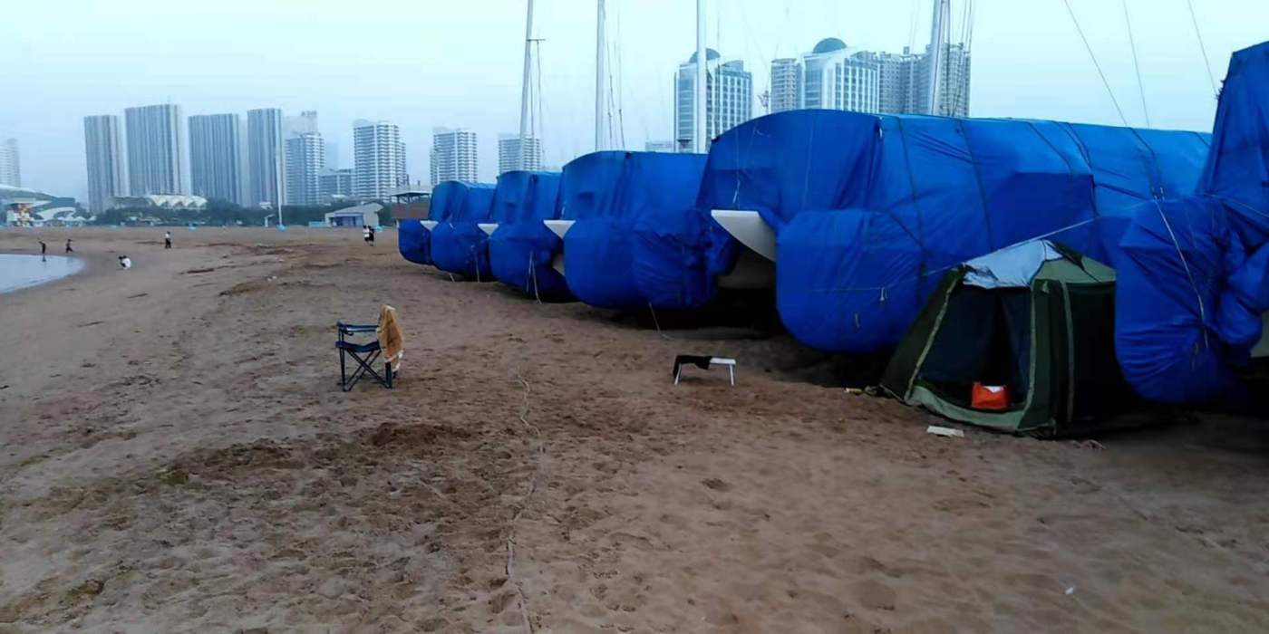Qinhuangdao a une immense plage, et je me suis éffouairé dessus en fin d’après-midi, regardant le monde passer. Il faisait un peu froid, et je ne peux pas dire que j’étais en maudit contre ça, après un mois de températures infernales depuis que j’ai commencé le road trip. J’ai monté ma tente dans le sable après avoir reçu la confirmation d’un ami d’un ami via WeChat que c’est pas interdit, juste que je ne peux pas faire de barbecue sur la plage. Il y avait quelques tentes installées, mais en fin d’après-midi ils ont paqueté tout ça et sont partis, les Chinois font pas beaucoup de camping mais aiment apporter une tente au parc ou à la plage juste pour avoir un petit coin pour chiller à l’abri du soleil. J’ai commencé à hésiter et finalement j’ai déplacé la tente proche d’un groupe de gros bateaux échoués recouverts de toiles, où elle serait moins visible que dans le grand espace ouvert et qu’il y ait moins de chances qu’un policier random vienne me faire chier au milieu de la nuit.
