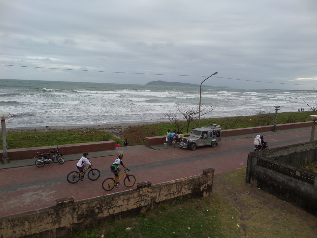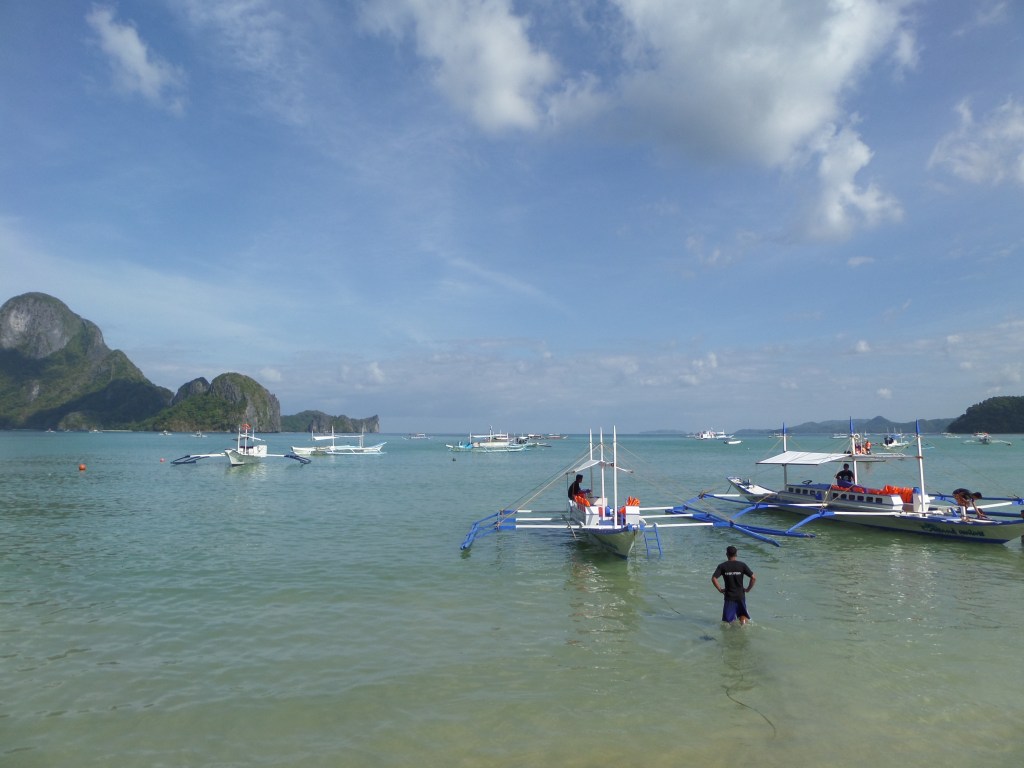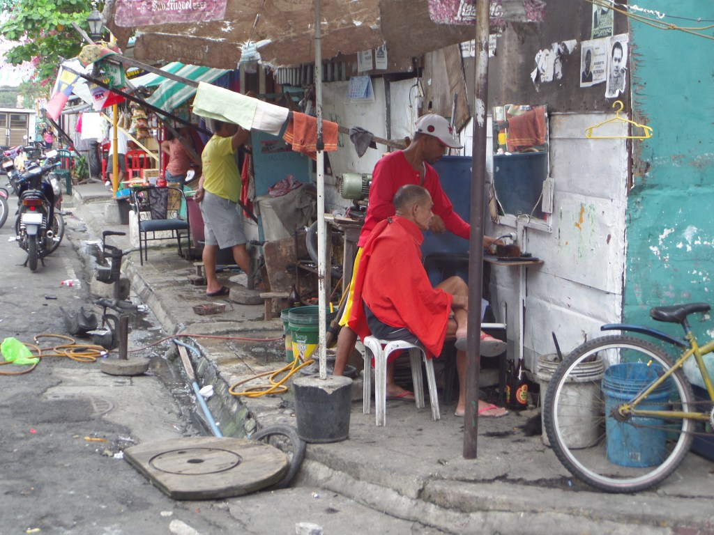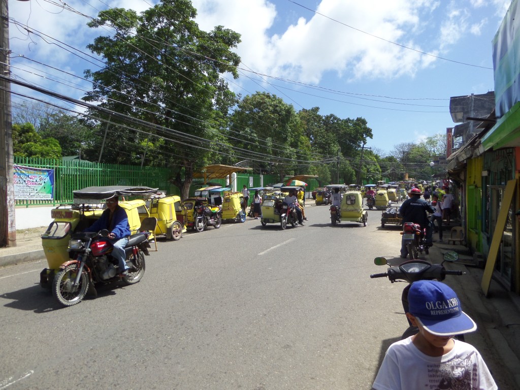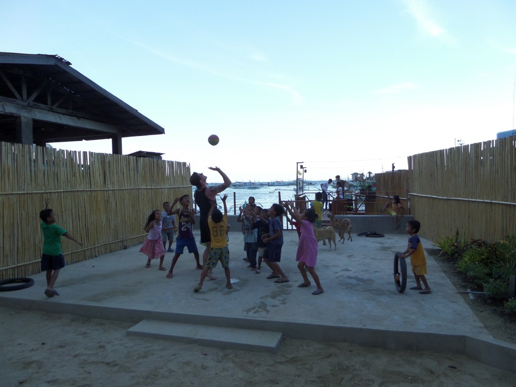 1- Pas loin du paradis sur Terre, ça. Et pour environ 5$, tu peux aller faire une petite croisière avec un de ces bateaux, qui t’emmène dans les îles à l’horizon faire de la plongée. (El Nido, Île de Palawan)2- Les trois demoiselles en provenance de Manille, qui nous ont accompagnés lors d’une de ces petites croisières. Elles furent de bonne compagnie.3- À jouer au ballon avec les gamins du coin. Ils sont habitués aux blanchâtres, dans ce lieu si touristique, mais étaient pas mal éberlués par la présence de mon compagnon Afro-Américain. “He’s a basketball! He’s a basketball!” s’exclama l’un des plus petits, à l’hilarité générale.4- Manille est pas mal dénuée de lieux touristiques intéressants. Cette vieille forteresse espagnole est sur la liste mais fait pas mal pitié.5- Dans ce cas-là, ce qu’il faut faire est se promener et absorber l’ambiance de l’endroit. Ainsi, tu peux tomber sur des scènes de rue assez spéciales, genre ce salon de barbier.6- Daet, sur la côte Pacifique de l’Île de Luzon. Les Philippins viennent y faire du surf. J’ai eu l’idée très conne d’aller nager là et je remercie Jésus de m’avoir laissé revenir sur la berge.7- Des gâteaux grivois dans le frigo de notre hôtel8- De la viande de crocrodile. Je pourrais pas vraiment commenter sur le goût et la texture, c’était haché et mélangé avec beaucoup de piments. 9- On a grimpé ce volcan (pas jusqu’au cratère évidemment, mais pas mal haut, un méchant défi avec la chaleur accablante et la cendre noire lousse) et on a retourné en ville sur le pouce, dans la benne de ce gros camion.10- La belle vie. Faut savoir relaxer des fois hein?11- À Masgate, les moto-taxis sont tous jaunes. C’est rigolo.12- En attendant que le jeepney se mette en route.13- Le tarsier, petit singe creepy aux gros yeux rouges globuleux, habitant de l’Île de Bohol14- Ils aiment leur basketball là-bas. On a joué quelques parties bien endiablées avec les jeunes du coin.