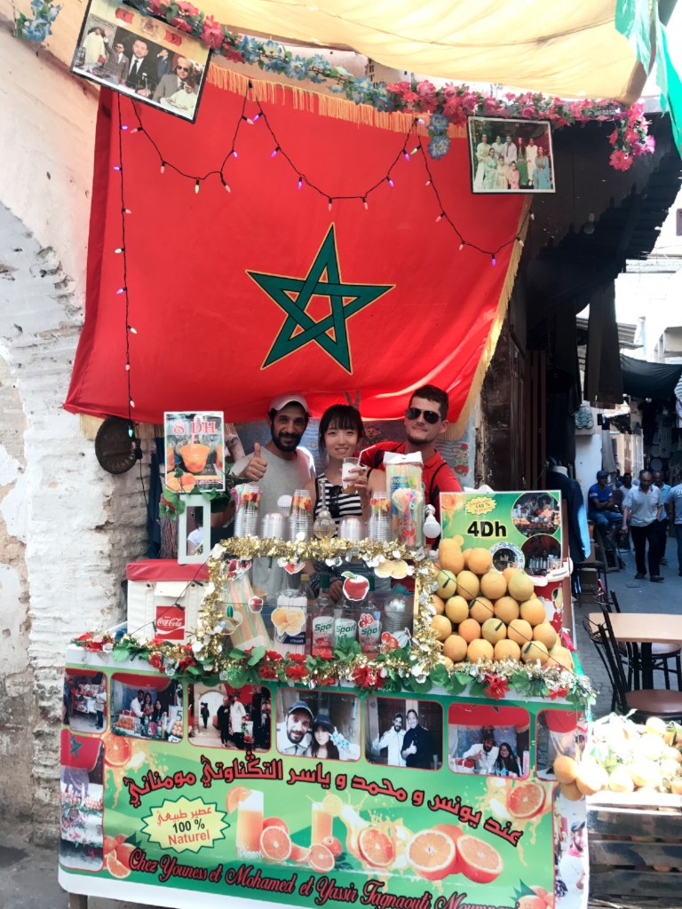 Les petites ruelles étroites qui serpentent entre les buildings sont pas vraiment organisées d’aucune façon, et c’est impossible de pas se perdre. Google Maps répertorie rien, la vieille ville est juste un gros ovale gris avec un point bleu qui te dit où tu es, et c’est comme ça qu’on s’oriente, on sait la direction générale à emprunter pour se rendre à notre hôtel, et une fois rendus proches, on reconnaît au moins quelques points de repère, notamment le petit monsieur super souriant à qui on achète un jus d’orange fraîchement pressé à chaque fois on passe devant son kiosque.