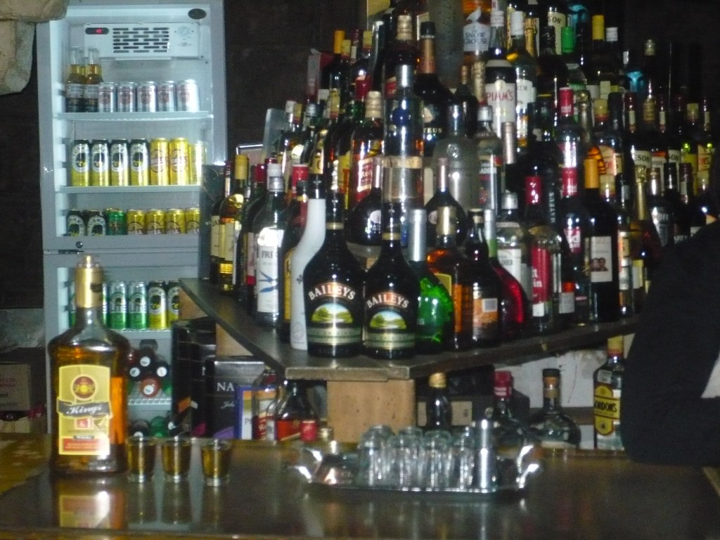 On va dans un bottle shop qui a quelques sièges de bar en avant, juste sur le trottoir, et j’achète un litre de whisky indien, une petite chaudière pleine de glaçons pis quelques bouteilles de soda, ainsi que quelques bières. Quelques-uns des chums de Kibuuki prennent un verre ou deux et partent, et d’autres arrivent et s’assoient avec nous, dont deux Indiens. Je leur demande d’où ils viennent en Inde et ils répondent qu’ils sont nés à Kampala, pis que ça fait plusieurs centaines d’années que leurs familles sont arrivées en Afrique. On en jase un peu, j’apprends que les Indiens en Afrique sont assez insulaires et voient les locaux avec suspicion et racisme et aussi vice-versa.