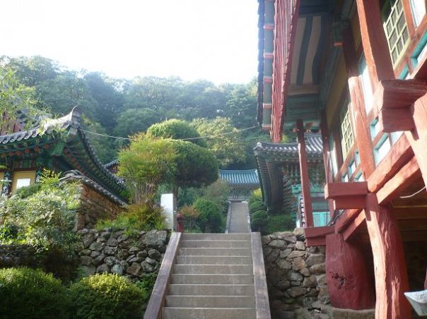 Je peux pas simplement laisser le pamphlet traîner, au cas où quelqu’un tombe dessus et reçoive la Lumière Éternelle. J’en dispose de manière appropriée avant de prendre un bus vers Ssanggyesa. C’est quelque peu une erreur et un clusterfuck de logistique et j’aurais dû le skipper. Ssanggyesa (non, le double S est pas une faute, ils font la distinction entre un S court et un S long eux autres) est la porte d’entrée pour un parc national plein de jolies montagnes, de sentiers de randonnées et de refuges où passer la nuit, mais je suis arrivé trop tard pour espérer me rendre à un d’eux avant que la nuit tombe. J’ai mal planifié mon affaire, j’aurais dû aller là en premier et Jinju le lendemain, mais tant qu’à être là je me promène dans le petit village et je grimpe un sentier très à pic pour avoir une vue sur les environs. Il y a aussi un temple, mais il est de peu d’intérêt après en avoir vu des milliers de copies identiques en Chine.