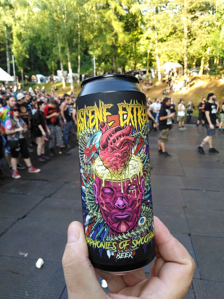 J’ai déjà parlé du phénomène des mangeurs de colle qui s’approchent d’un mosh pit actif avec un breuvage et sont surpris de se le faire renverser partiellement ou totalement? Hé bien puisque le Obscene Extreme est un festival plutôt convivial, la majorité du temps la victime en rit et parfois un échange d’excuses verbales ou non-verbales s’ensuit, mais des fois ça fait du drama. Un punk d’un certain âge avec les cheveux en crête, une quincaillerie mobile sur sa face, des stretches d’oreille assez gros pour mettre une balle de golf au travers, des tatouages crus dans son cou et sur sa tête et un t-shirt délavé et nauséabond qui dit NO HOMOPHOBIA, NO HATE, NO RACISM, NO SEXISM, NO CAPITALISM (no original thought…) se pointe en plein milieu de l’espace vide entre deux tounes, et quand Cahnalet part un beau riff de pit, wham, sa bière se ramasse à terre. Il fait un geste de frustration et pointe son gobelet vide au gars qui lui a rentré dedans, comme si c’était sa faute. Heille sti. Imagine être punk croûteux au point que tu te rendes volontairement inemployable mais être quand même un esti de calisse de poseur comme ça.