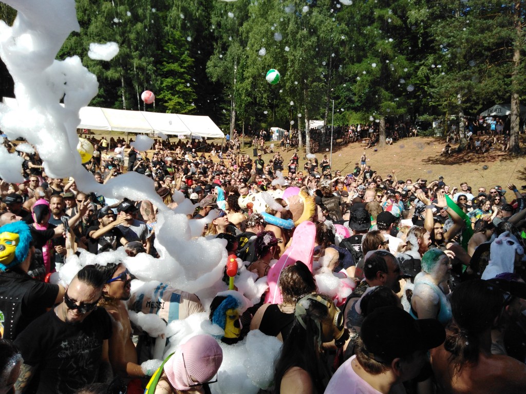 Il fait maintenant crissement chaud, et les techs de scène arrosent la foule avec un boyau pendant que les vieux Japonais de SPEED!! NOISE!! HELL!! jouent leur punk hardcore chaotique, avec le chanteur qui passe la moitié du set dans le pit ou en bodysurfing. INCARCERATION (deux Brésiliens et deux Allemands) jouent un OSDM avec la pédale dans le fond, et ensuite il y a une succession de bands qui m’intéressent peu et je compte judicieux d’aller faire un somme au lieu. La température interne de ma tente est assez haute pour faire cuire un poulet alors c’est un no-go, je prends mon matelas de sol et je vais trouver un spot dans le bois, pas loin d’une punkette croûteuse qui roupille dans un hamac.