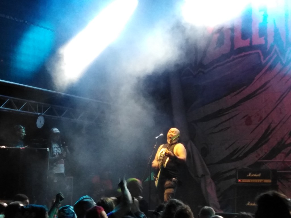 Les blondinets norvégiens d’Obliteration reviennent sur scène sous la bannière de NEKROMANTHEON, leur projet plus thrash. C’est un peu générique et fait peu d’impression sur moi, peut-être que je suis juste un peu fatigué et en attente de mon second souffle. Et c’est pas CAPITAL SCUM qui me sortira de ma torpeur, les Belges jouant un punk hardcore qui pourrait bien être la même pièce jouée 15 fois de suite. C’est quand même bien, et le groupe roule depuis les années 80 (en tout cas les deux papis qui restent) alors il faut leur donner leur respect.