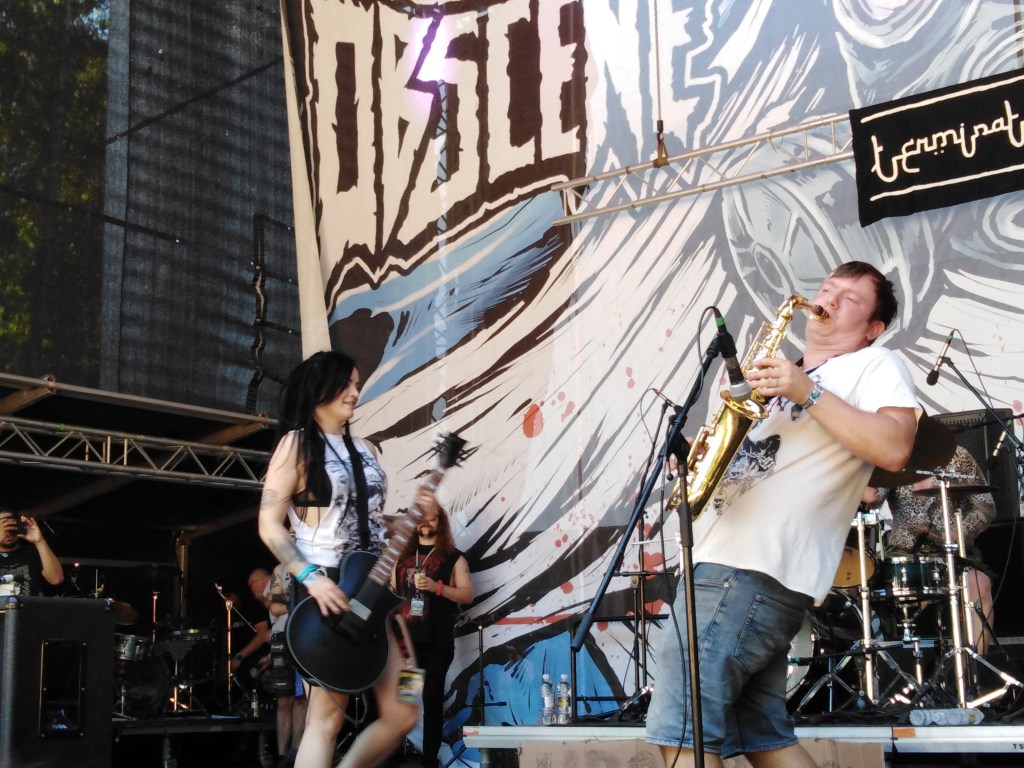 Le soleil émerge de la lisière des arbres à 9 heures, transformant ma tente en fourneau. Je vide une bouteille d’eau et je claudique jusqu’au site, arrivant quelques minutes avant que PRESCRIPTIONDEATH commence leur set de grindcore infusé de noise et d’humour sec. Puis c’est REFORE, groupe tchèque de thrash un peu plus crossover que ceux de la veille. Un circle pit se forme, mais la majorité des gens sont encore en train de cuver leur lendemain de brosse et arrivent lentement.