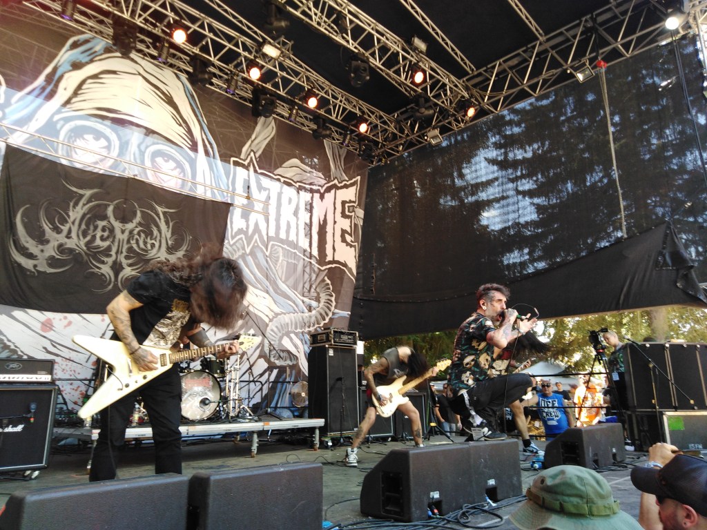 Le cinquième ou sixième groupe mexicain du festival en est un qui est légendaire, les motherfucking DISGORGE! Je me demande comment leur death guttural d’une brutalité inouïe se transférera au live, hé bien ils font une job exemplaire, malgré le chaos de ces belles ritournelles des albums classiques du sous-sous-genre que sont Forensick ou Gore Blessed to the Worms ils arrivent à rendre ça potable. Mention au chanteur/guitariste qui met son micro à la hauteur de son nombril et plie ses genoux et se penche de manière extrême pour growler. Ils concluent avec un Rancid Bowel Sarcoma qui part un pit monstre que je suis content de regarder des gradins.