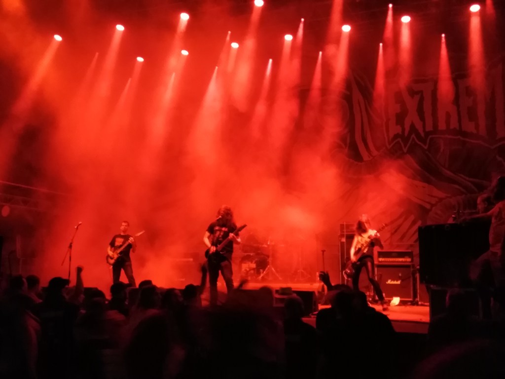 J’écoute le LP Monolith of Wrath régulièrement depuis sa sortie il y a quelques mois, donc je suis bien fébrile à l’idée de voir LUCIFUGE et les Allemands ne déçoivent pas avec leur beau black-thrash! Continuant la thématique des vestes en jean sans manches, voici HELIONIGHT, un power trio nous venant du Bahrain of all fucking places. Leur leader Omar a déjà mis les pieds sur les planches du Obscene en 2012 avec le groupe de grindcore saoudien Creative Waste, c’est cool de revoir sa sympathique bouille d’Arabe chauve revenir et s’emballer sur du beau thrash à saveur Bay Area.