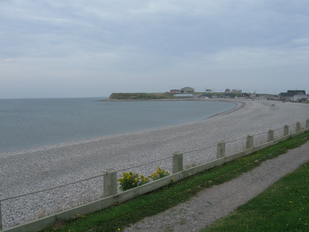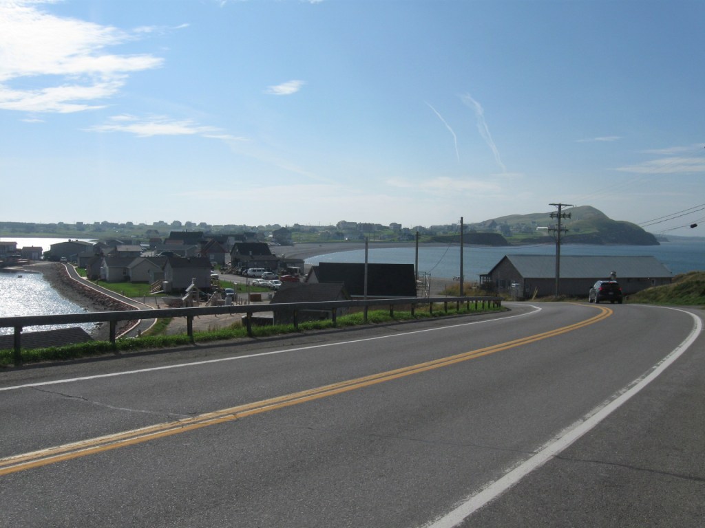 Le paysage est franchement saisissant, et de loin le plus beau que j’ai vu de tout ce voyage (il sera ensuite supplanté par le Cap-Breton et Terre-Neuve, pas pour lui enlever rien cependant). Ouin, il y a des jolis coins dans le Bas-St-Laurent et la vallée de la Matapédia et le Nouveau-Brunswick et l’IPE, mais ça bat pas les dunes et le paysage marin qui m’entoure alors que je gobe les kilomètres en me dirigeant vers le nord.