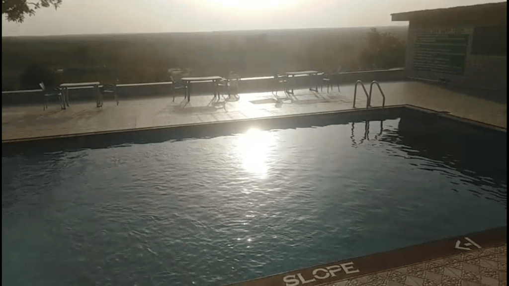 On se prend une chambre sur les lieux, ce qui coûte un gros 650 cedis mais nous évite le chiard et le stress de crécher dans le village voisin et dépendre des motos-taxis pour pas si moins cher, et elle est spacieuse et impeccable. Pas d’AC, mais un bon ventilateur bien puissant. Des babouins se promènent autour, nous regardant d’un air de “Veux-tu t’battre?”, et on s’est fait dire de barrer la porte en tout temps, les p’tits estis sont capables les ouvrir. Puis on va s’inscrire à un safari de nuit, avant d’aller boire une bière de victoire et de profiter de la piscine. L’eau est chaude comme de la soupe mais décrasse pareil, et j’y macère un bout avant de manger un souper de riz frit.