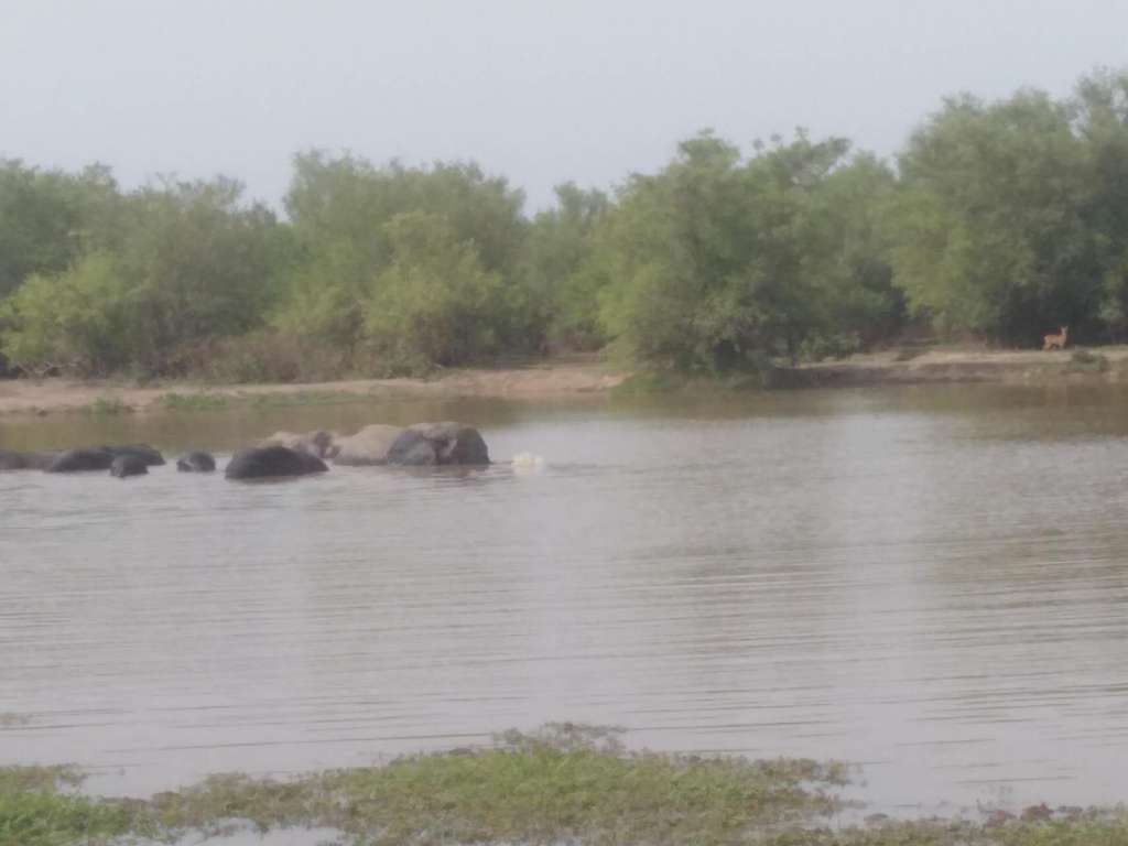 Le guide nous emmène dans un terrain à mi-chemin entre la savane et la forêt, ce que les Australoïdes appellent le bush. Encore une fois, les antilopes et Pumba sont au rendez-vous, mais la star du show est l’imposant éléphant. On en voit une gang se baigner, avec juste leurs dos qui émergent comme des îlots grisâtres, et des fois une trompe qui floppe dans les airs tel un pénis à moitié bandé. Et un peu plus loin dans notre marche, on en voit deux qui sortent du mois et marchent lentement dans la plaine. Ils sont gros en tabarnak, au moins deux fois plus que les minables éléphants à petites oreilles qu’on voit en Asie. Je suis obnubilé par leur présence.