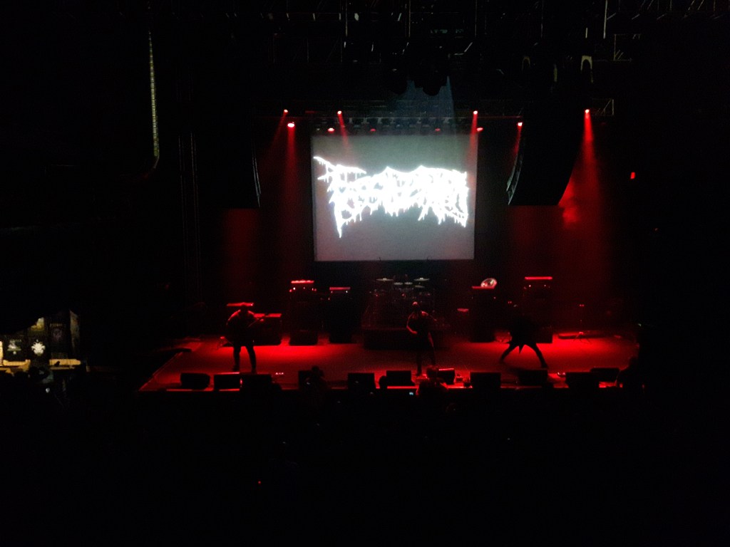 VOMITORY est un des rares groupes que j’adore sur album mais dont les shows me font un peu chier. Je me suis dit que je leur donnerais une chance vu que leur musique est si excellente, au début ça part mal, le son est un gros crisse de fouillis, avec la guitare juste trop forte et pas de vocal du tout, mais éventuellement le soundman arrête de se décrotter le nez et le reste du set est béton. Les quatre patibulaires Vikings nous abreuvent de leur death typiquement suédois, surtout des tracks de leur dernier album mais aussi la chouette Terrorize Brutalize Sodomize et une track de Redemption. Leur set est bien apprécié, je pense ils viennent pas si souvent en Amérique.