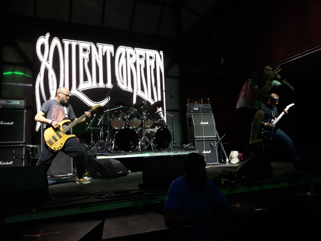 DISMEMBER… bin c’est Dismember. C’est mon moins préféré du Big Four et de loin, leur approche plus mélodique et leurs tounes qui se ressemblent toutes étant des choses qui rendent mon pénis assez mou. J’aime juste la première minute de la première toune de leur premier album, ensuite c’est downhill. En plus le son est à chier, alors même si je me forçais à attendre pour voir si ils vont jouer Override of the Overture ou pas, il se pourrait je sois juste en crisse qu’on entende juste un bruit de bourdonnement. Donc j’assiste juste à une quinzaine de minutes de ce qui est essentiellement le headliner du festival, me disant que je suis mieux, stratégiquement, d’aller me placer pour SOILENT GREEN. Je suis surpris qu’il y ait si peu de monde, alors je m’octroie un spot drette à la barrière. Je pensais jamais voir ce groupe défunt depuis longtemps, mais là je suis en avant, à me faire aller la tête au rhythme de leur mix si original de grindcore et de sludge de la Nouvelle-Orléans. Yes esti.