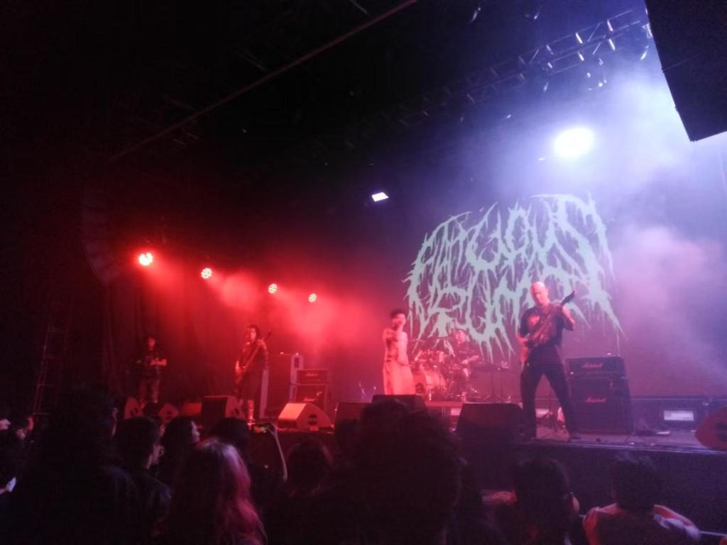 Il y a six groupes au menu: trois oeuvrant dans le black atmo, et trois dans le death brutal. Rien dans le milieu. Un bien étrange mélange mais j’ai rien véritablement contre, étant friand des deux sous-genres. Il y a pas mal de niaisage à l’entrée, pogné comme je suis dans une file de centaines de jeunes pouels chinois, et quand je rentre, RENGUI a déjà commencé. Le quatuor de Guangzhou joue un black metal très chinois avec des accents mélodiques et post-black, un pas pire set qui s’avère un peu long, ils jouent un gros 40 minutes, sans compter le bout que j’ai manqué au début. À la fin ils allument les lumières et sortent de leurs personnages pour remercier la foule et encourager les gens à les suivre sur les médias sociaux, je sais pas comment me sentir devant ça, je suis habitué aux groupes black qui respectent le kayfabe jusqu’à la toute fin et au delà, mais je sais aussi que at the end of the day, c’est juste de la musique excentrique joué par des gens somme toute assez normaux, qui enlèvent leur corpsepaint, s’attachent les cheveux longs en queue de cheval et vont travailler dans un bureau le lendemain.